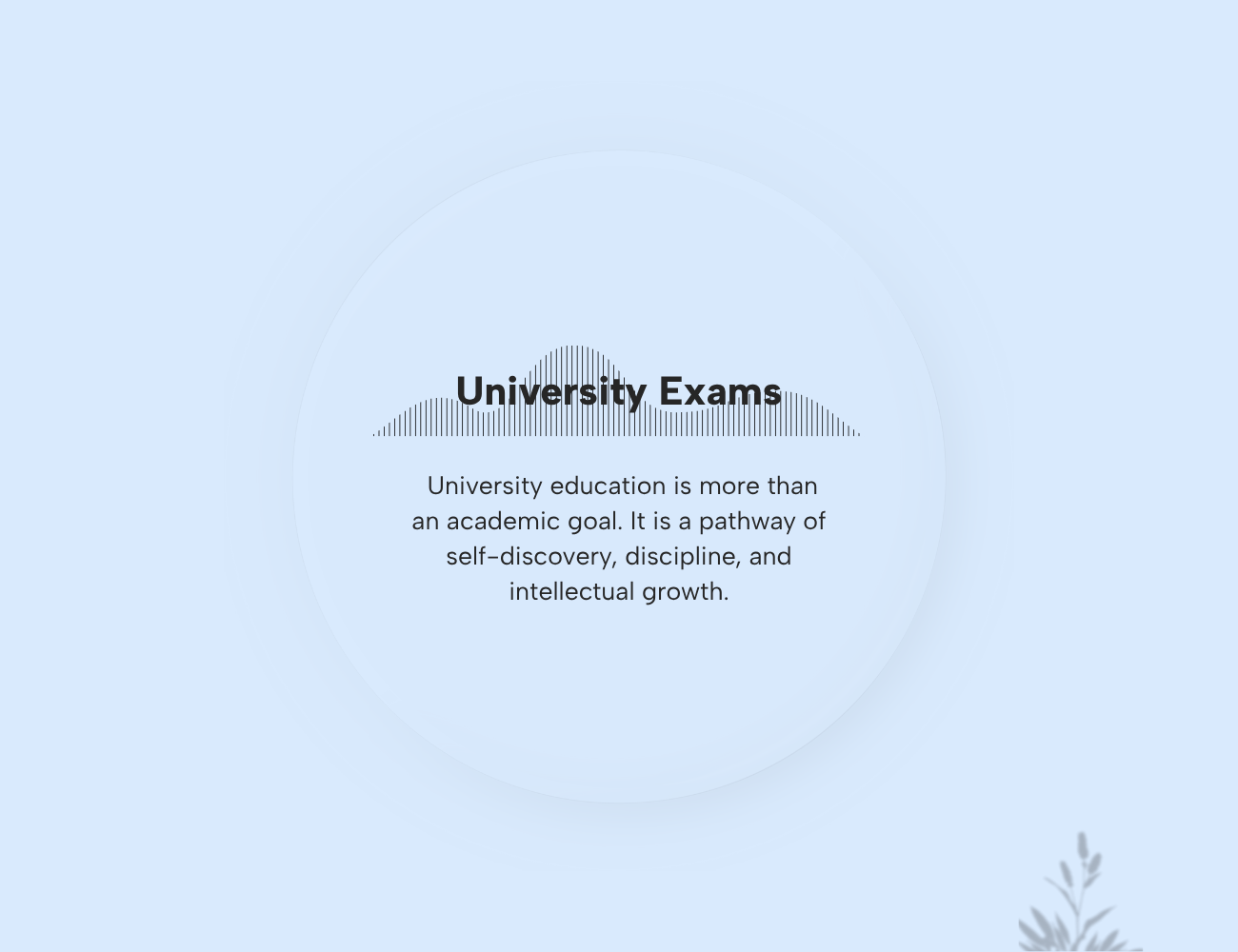 Each course under University Entrance Exams focuses on three essential areas — conceptual understanding, consistent testing, and guided mentorship. Students are encouraged to build habits of self-study, apply what they learn through regular assessments, and seek direction when they face academic uncertainty.
